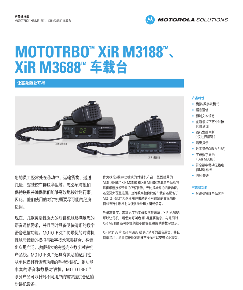 摩托羅拉XIR M3688數字車載台