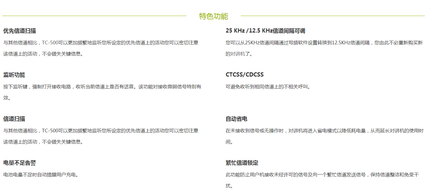 TC-500是HYT推出的經濟型手持無線對(duì)講機,它經濟實用、性能可靠、外觀小巧、手感舒适,可以廣泛的适用於(yú)各種行業,以優秀的品質保證使用者正常的無線通訊
