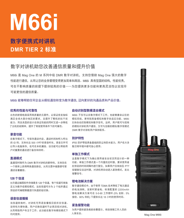M66i 是 Mag One 的 M 系列中級 DMR 字對講機,