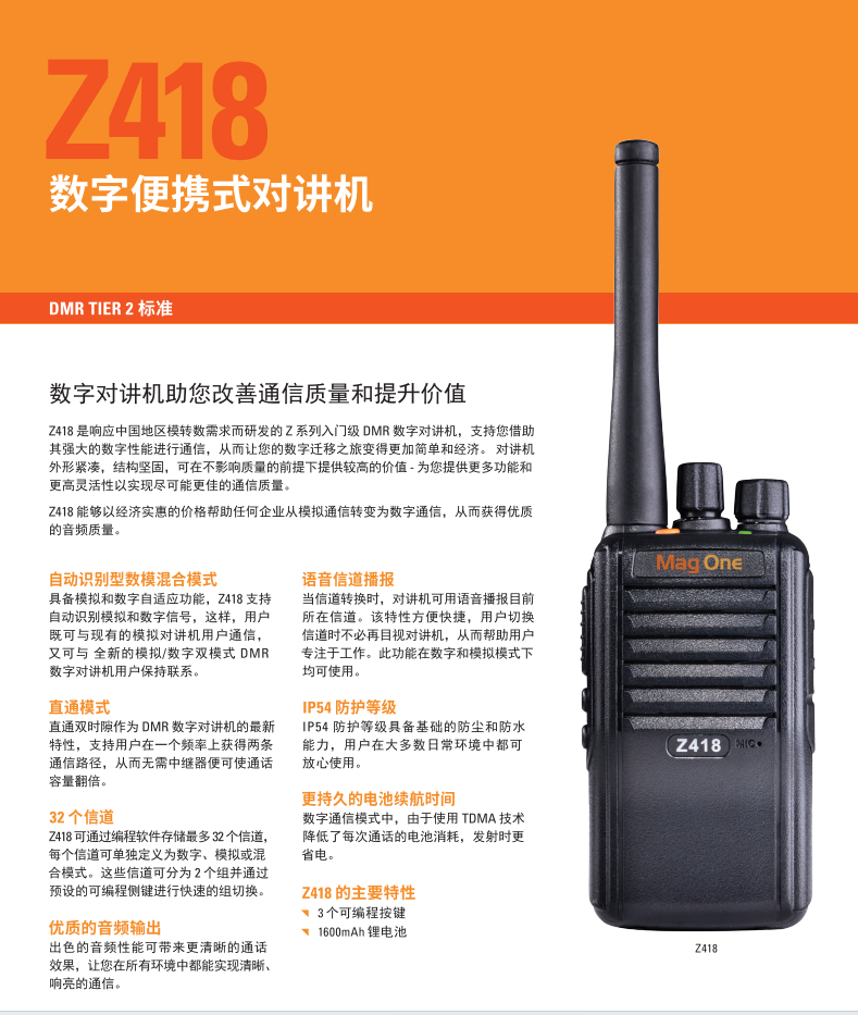 是響應中國地區模轉數需求而研發(fā)的Z系列入門級 DMR數字對(duì)講機,