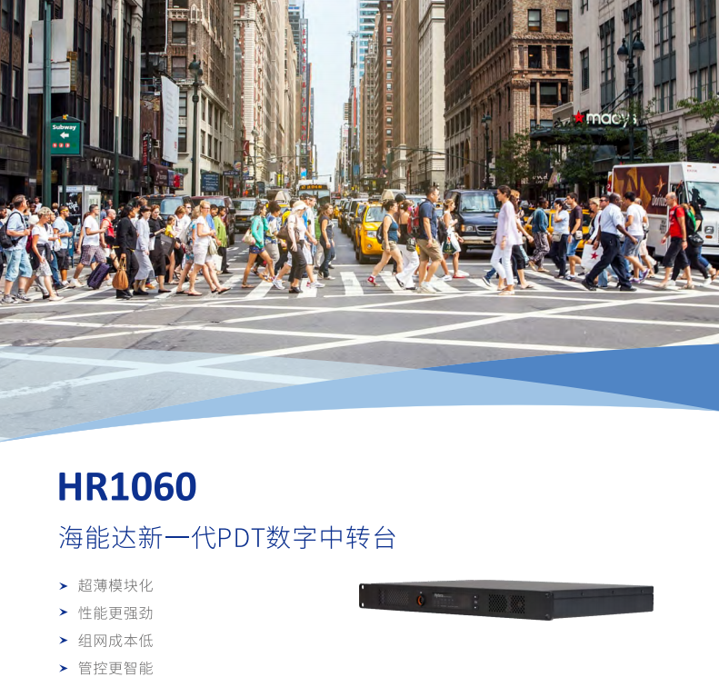 基於(yú)豐富的行業經驗、客戶的反饋和技術演進,海能達推出超薄型專業數字中轉台HR1060。産(chǎn)品在外觀、性能和後台管理均有新的跨越,功能更強大但配置管理更便捷,能夠滿足您對中轉台的更高要求。