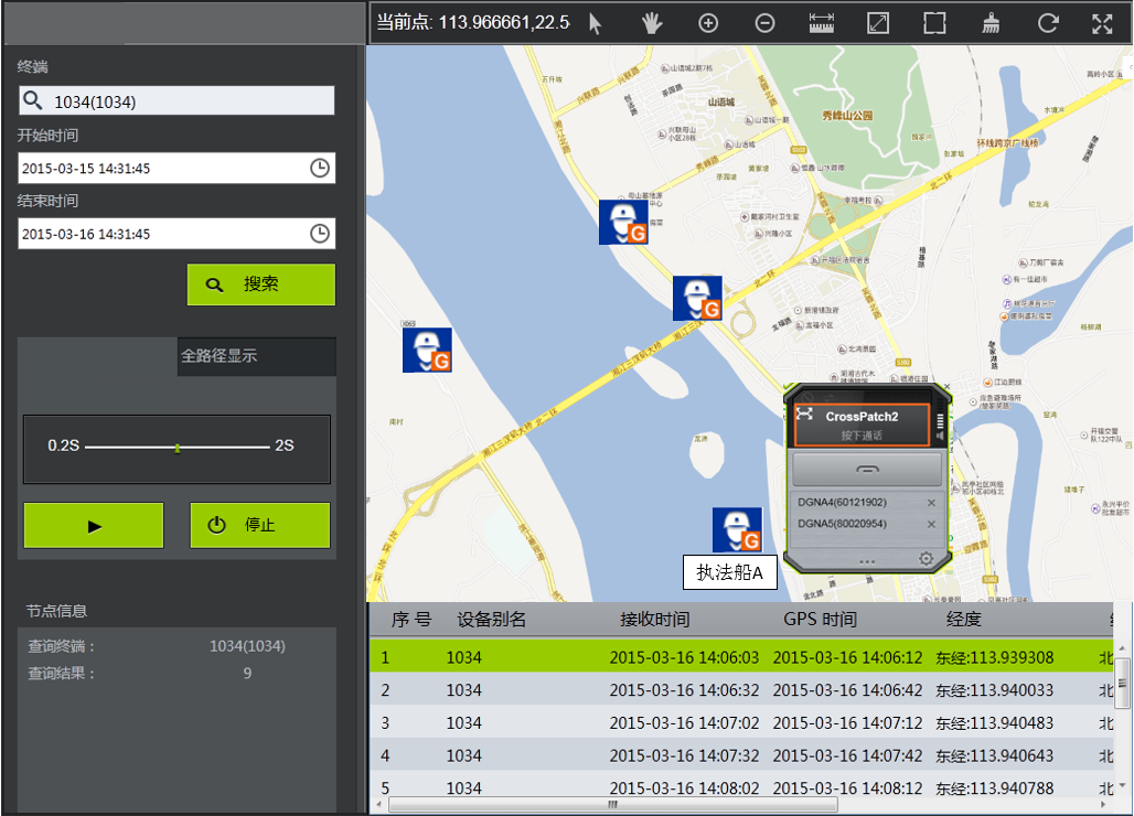 地方海事處以及省市級海事局可以根據數字船台以及數字手台的GPS定位信息,在綜合調度平台上實時觀察人員與執法船的位置,及時對其發起語音呼叫,提升執法通信效率。
