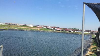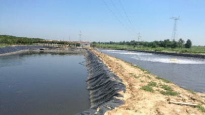 河南信陽某豬場(chǎng)生态塘(HDPE 防滲底膜面積(jī) 33000m2)