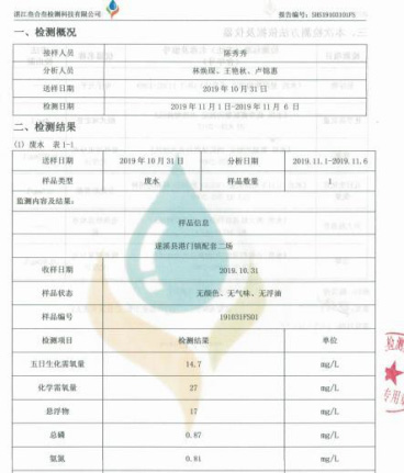 湛江正大配套二場出水第三方檢測(cè)報(bào)告