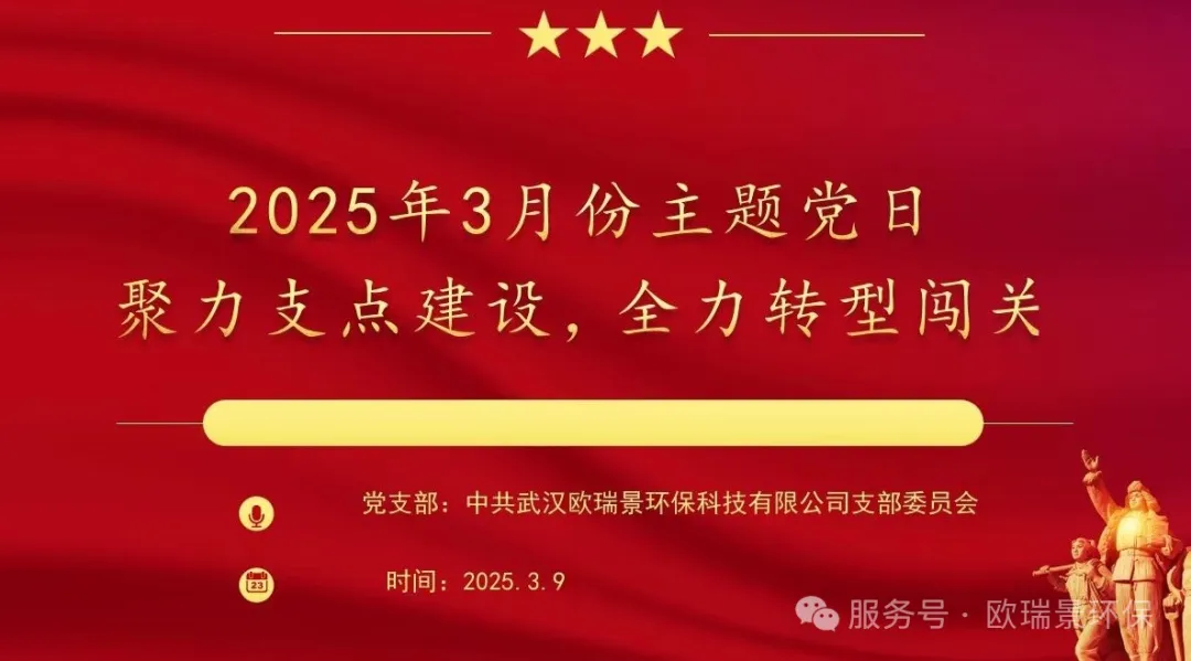 【概要描述】2025年3月9日下午,中共武漢(hàn)歐瑞景環(huán)保科技有限公司支部委員會順利召開2025年3月主題黨日活動,並同步開展2024年度組織生活總結會。我司全體黨員及街道領導共同參與,通過理論學習、批評與自我批評、民主測評等環節,進一步強化黨組織凝聚力,推動黨建工作高質量發展。