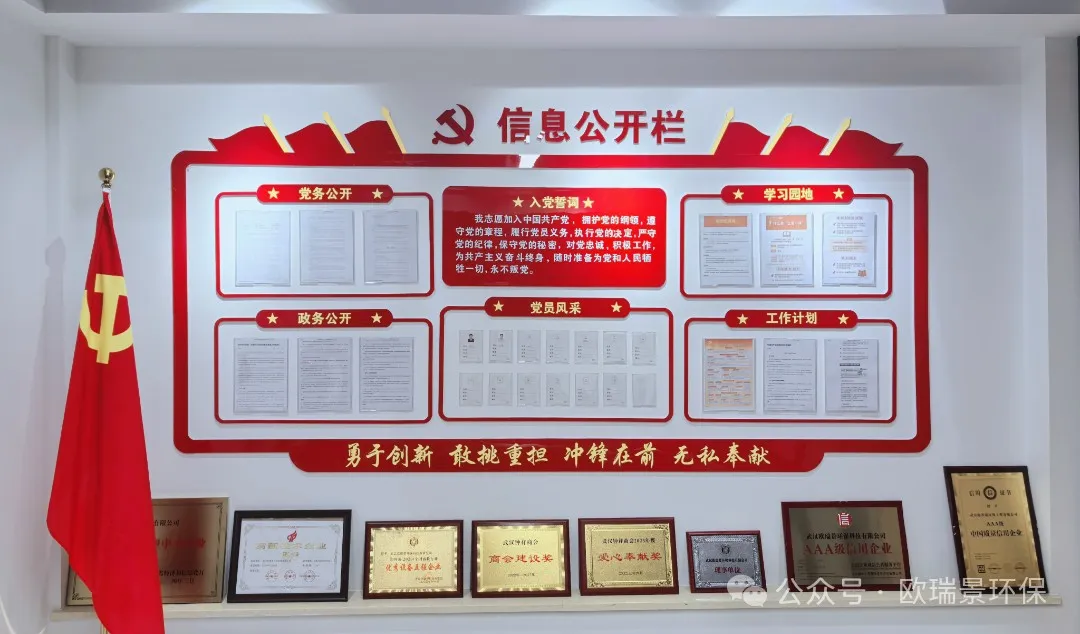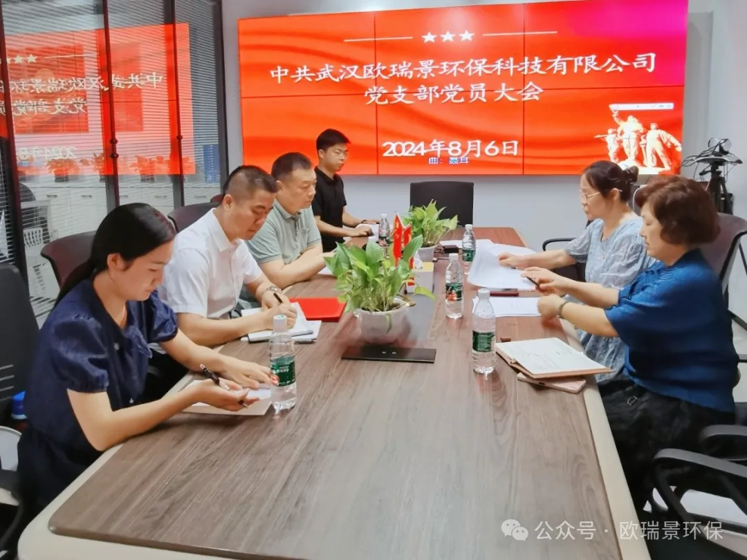 2024年8月6日上午,随著鮮紅的黨旗在會議室中央緩緩展開,武漢(hàn)歐瑞景環(huán)保科技有限公司黨支部宣告正式成立。此次成立大會不僅标志著公司在推進非公企業黨建工作上邁出瞭堅實的一步,也翻開瞭武漢歐瑞景以黨建引領綠色發展、創新驅動的新篇章。